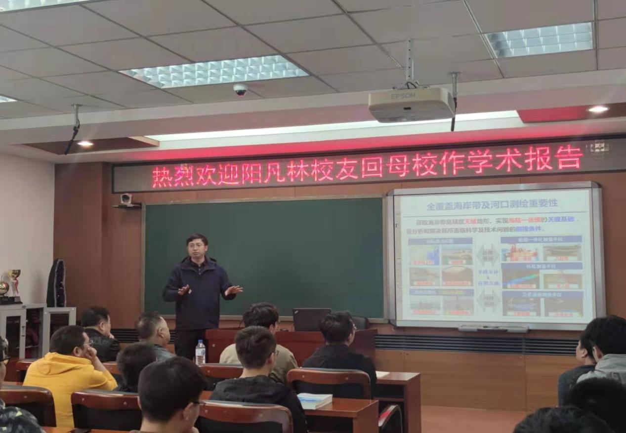 4月2日下午,应科学研究处和勘查与测绘工程学院邀请,山东科技大学阳凡林校友回校作了题为《海岸带测量技术及应用》的学术报告。本次报告是校庆系列学术活动的第一场报告,乐鱼校庆筹备工作办公室、校友工作办公室、科学研究处、勘查与测绘工程学院有关领导和测绘工程专业的师生参加了本次报告会。会议在湖东校区第一教学楼226演播室举行,由勘查与测绘工程学院朱伟刚副院长主持。