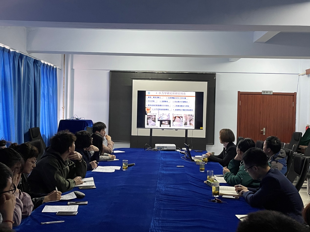 会上,刘亚坤教授对立轴漩涡试验、弧形闸门闸前漩涡试验与消涡研究、平板闸门闸前漩涡试验与消涡研究、水力学研究所研究特色以及未来研究聚焦等内容进行了细致专业的介绍。此外,他还就新型高效消能工、长距离输水的水力学问题、流固耦合问题的数值模拟等问题同大家进行了深入交流。刘教授的报告内容丰富精彩,大大拓宽了与会师生的学术视野。