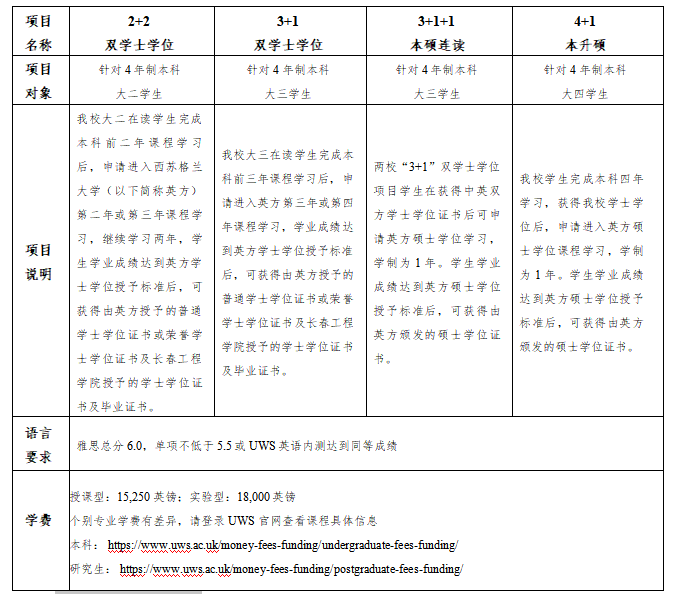 1.西苏格兰大学收费项目: