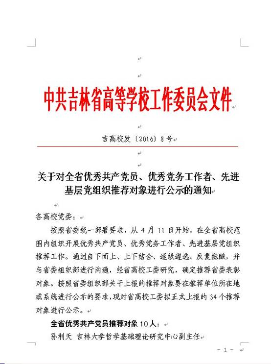 关于转发省高工委《关于对全省优秀共产党员、优秀党务工作者、先进基层党组织推荐对象进行公示的通知》的通