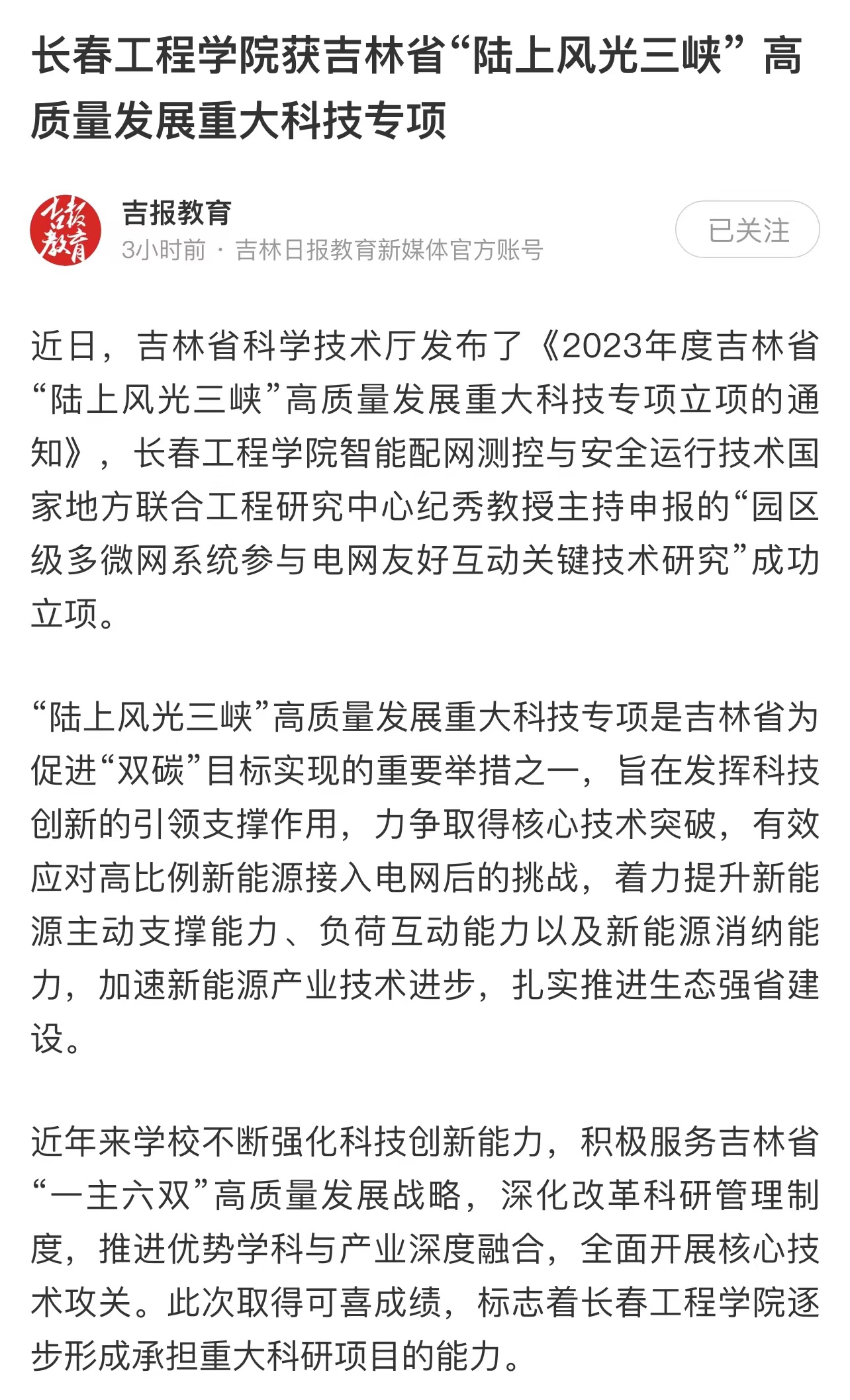 【人民日报-吉报教育】乐鱼在线登录入口获吉林省“陆上风光三峡” 高质量发展重大科技专项