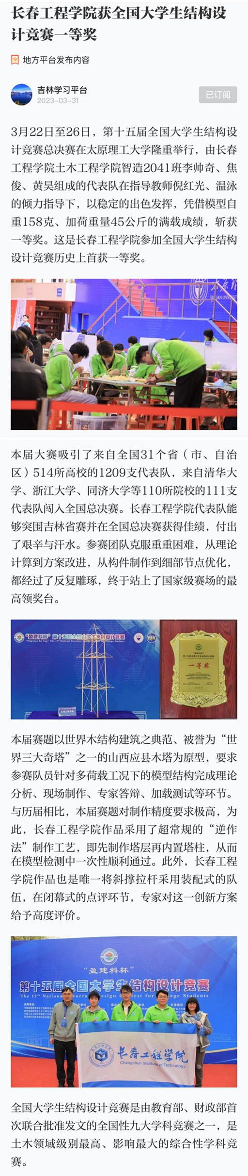 【学习强国】乐鱼在线登录入口获全国大学生结构设计竞赛一等奖