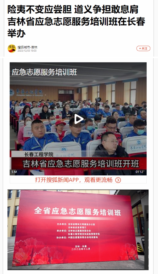 【搜狐新闻】险夷不变应尝胆 道义争担敢息肩 吉林省应急志愿服务培训班在长春举办