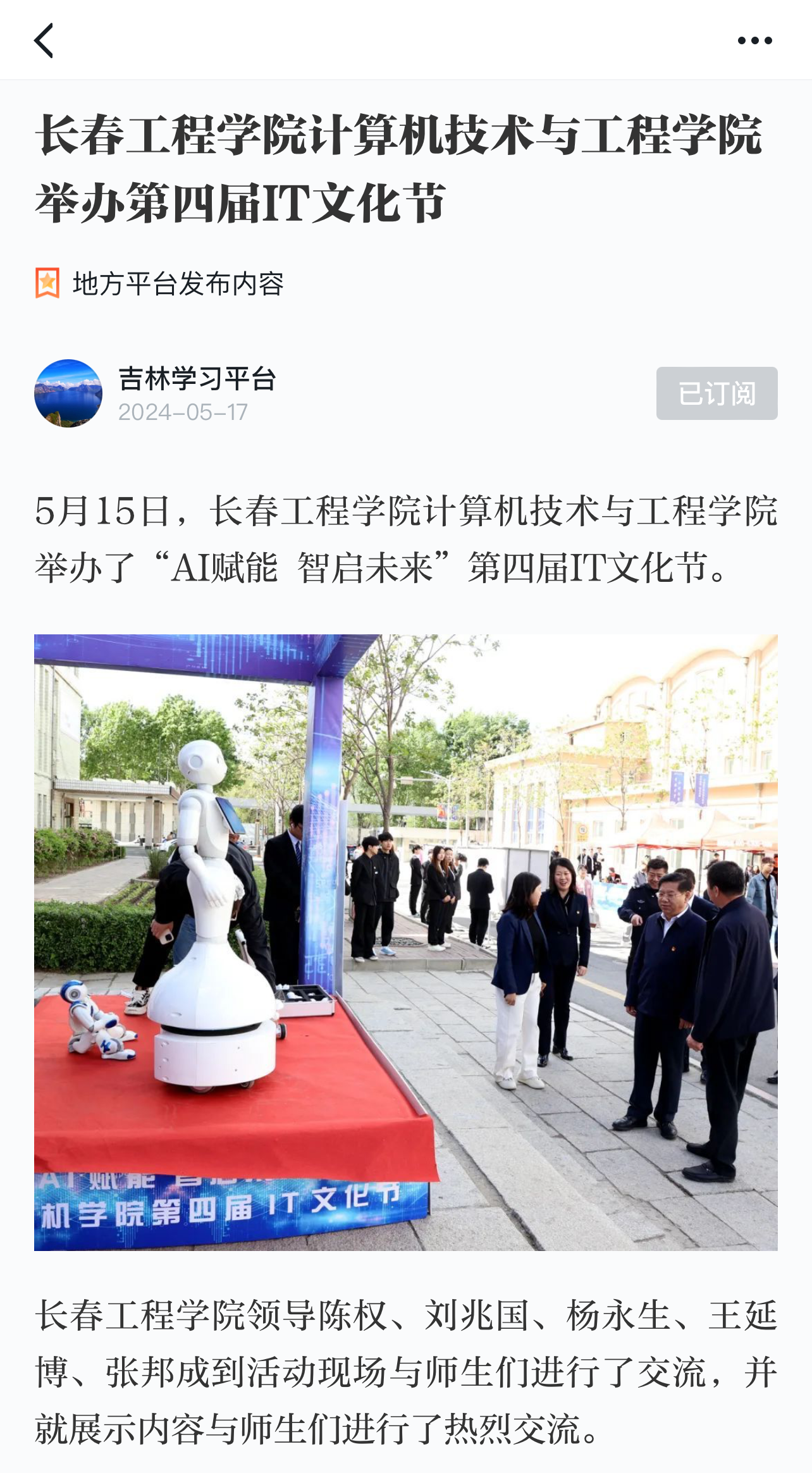 学习强国、吉林日报等媒体报道我校计算机技术与工程学院举办的第四届IT文化节
